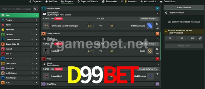 A aposta D99Bet oferece aos jogadores a experiência mais conveniente de apostas em eSports!
